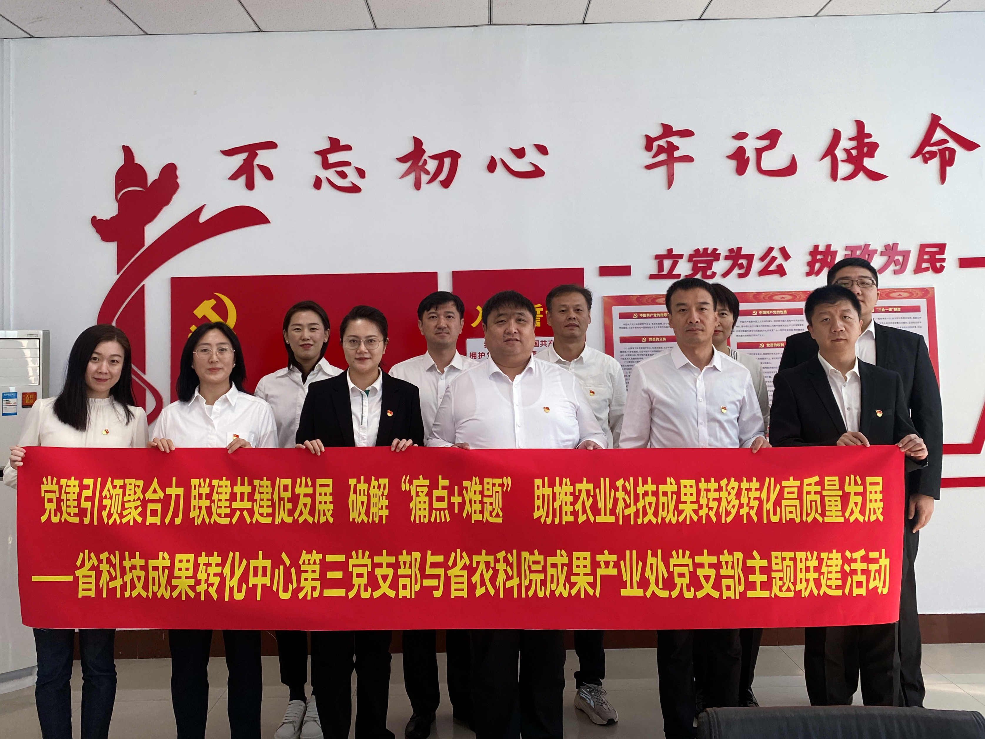 10月10日,省科技成果转化中心第三党支部与省农科院成果产业处党支部联合开展以“党建引领聚合力,联建共建促发展,破解“痛点+难题”--助推农业科技成果转移转化高质量发展”为主题的党支部联建活动。省科技成果转化中心第三党支部书记刘伟卓同志、省农科院成果产业处党支部书记王泽胤同志及10名成员参加活动。
