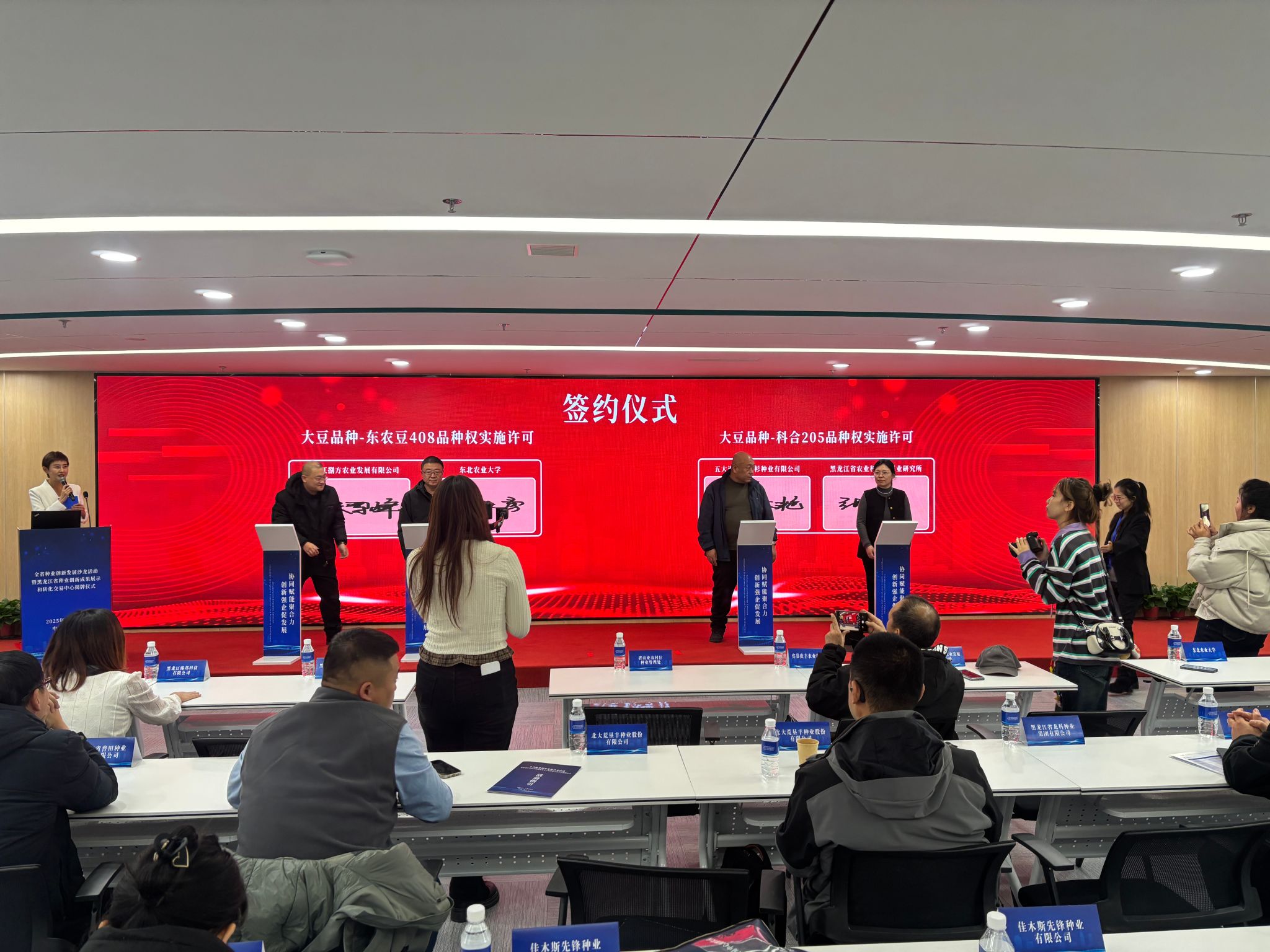 11月18日,由黑龙江省农业农村厅、黑龙江省农业科学院、新华社新闻信息中心黑龙江中心联合主办的全省种业创新发展沙龙暨黑龙江省种业创新成果展示和转化交易中心揭牌活动在我院国际农业科技创新中心圆满举行。省农业农村厅副厅长姜以全为活动致辞,省农科院副院长还红华、焦少杰,新华社黑龙江中心主任王建出席活动。来自全省科研院校、金融机构、种业企业及新型经营主体的百余名代表齐聚,以“协同赋能聚合力 创新强企促发展”为主题共绘种业创新发展蓝图。