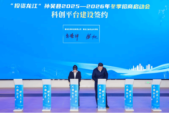 为深化院地合作,推动黑龙江省沙棘产业良种化、规模化发展,12月29日,我院副院长刘杰带领乡村振兴科技研究所赴孙吴县参加“投资龙江”孙吴县2025-2026年冬季招商启动会,并与孙吴县聚创科技有限公司签署共建产业研究院及沙棘优良品种推广技术服务协议,协议金额200万元,实现我院建院以来沙棘品种转化“零”的突破,也创下我院果树行业单个品种转化金额最高记录。