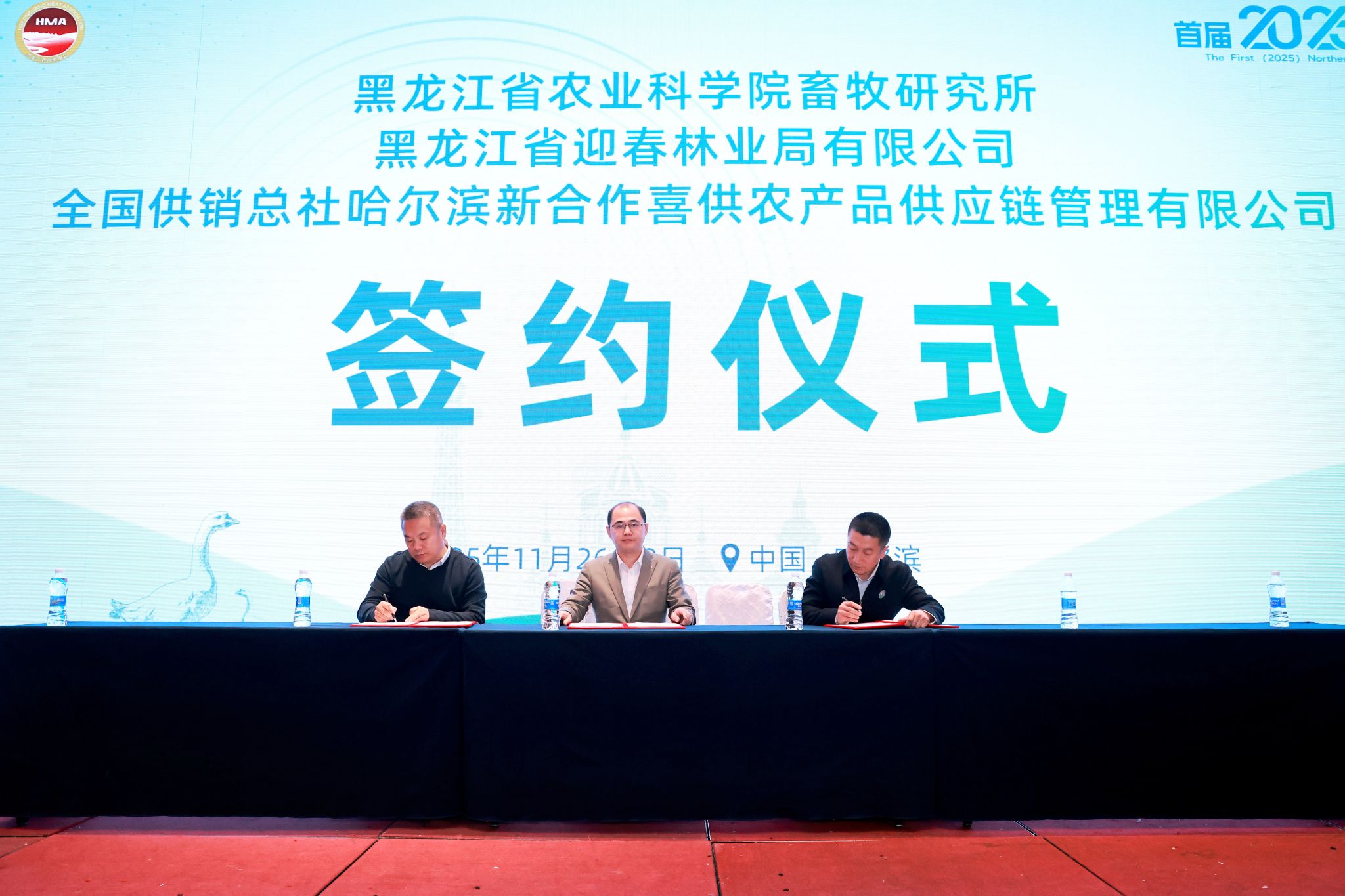 开幕式后,举行了签约仪式。我所与哈尔滨新合作喜供农产品供应链管理有限公司、黑龙江省迎春林业局完成三方签约;重庆市鹅堂食品有限公司与黑龙江省迎春林业局有限公司也成功达成双边合作。在当前激烈的市场竞争格局下,这些签约合作正是各方发挥资源、技术、渠道等优势,深化合作空间、实现互惠互利的生动实践,为北方鹅业产业链协同发展搭建起新桥梁。