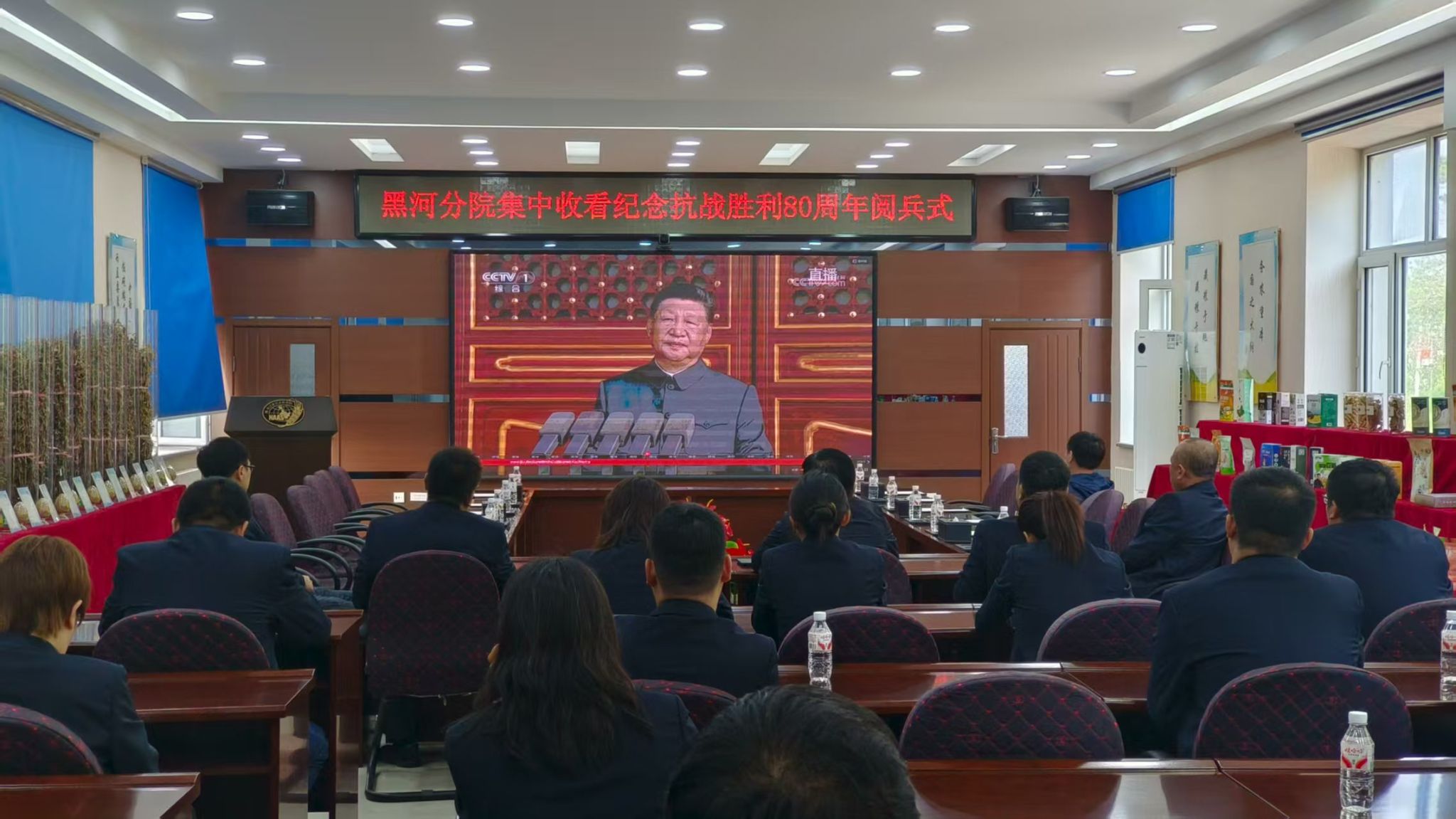 2025年9月3日,黑河分院组织全体职工集体观看了纪念中国人民抗日战争暨世界反法西斯战争胜利80周年大会。此次观看大会,全体职工认真聆听了习近平总书记发表的重要讲话,他表示此次大会的目的是“铭记历史、缅怀先烈、珍爱和平、开创未来”。