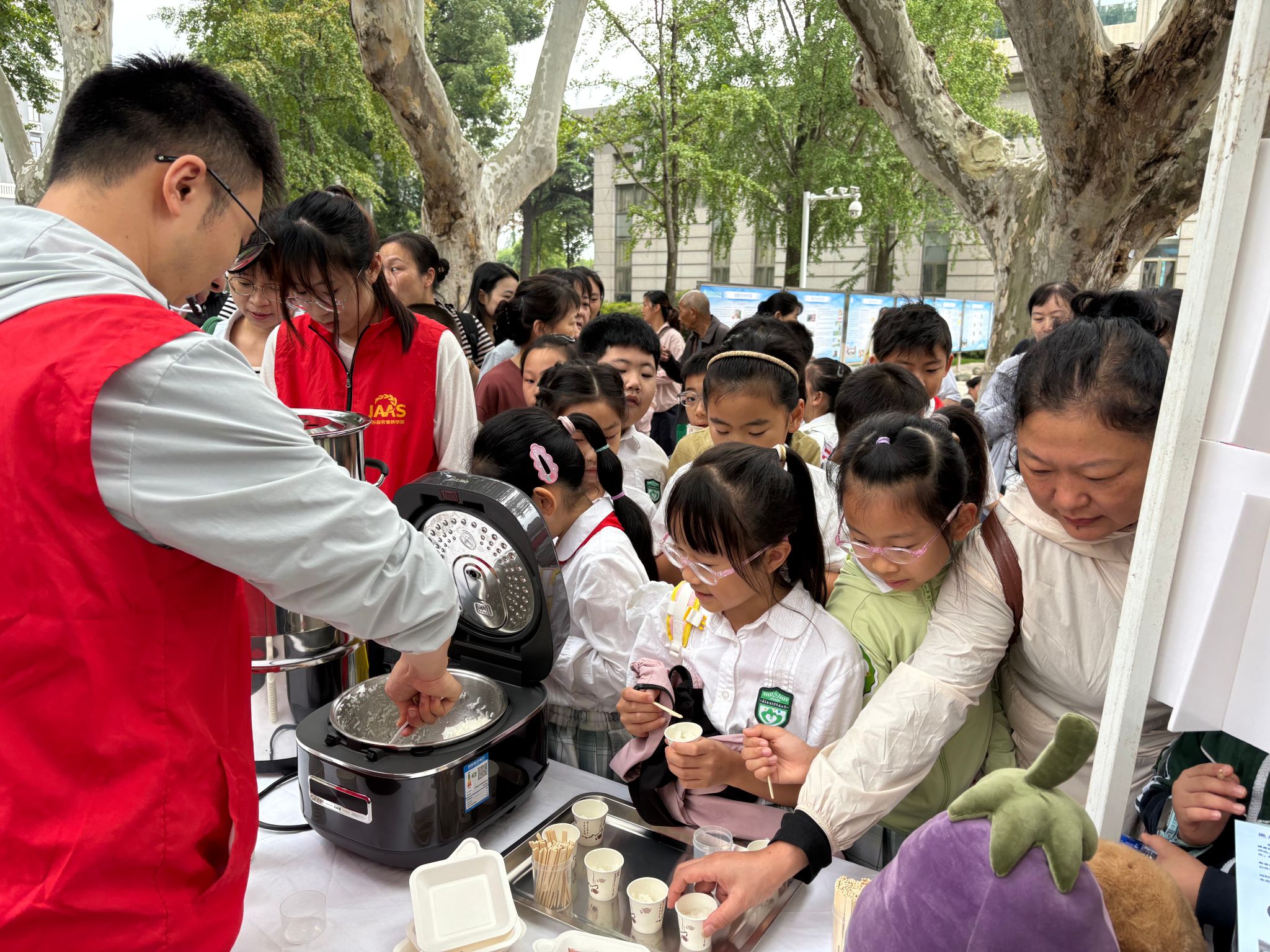 本次开放日活动由江苏省农业科学院和江苏省农学会主办,江苏省绿色食品办公室和江苏省农业科学院成果转化处承办,江苏省绿色食品协会等单位协办。活动以庆祝第八个“中国农民丰收节”和首个全国科普月为契机,吸引了南京多家中小学研学团和近2万名市民共同参与。