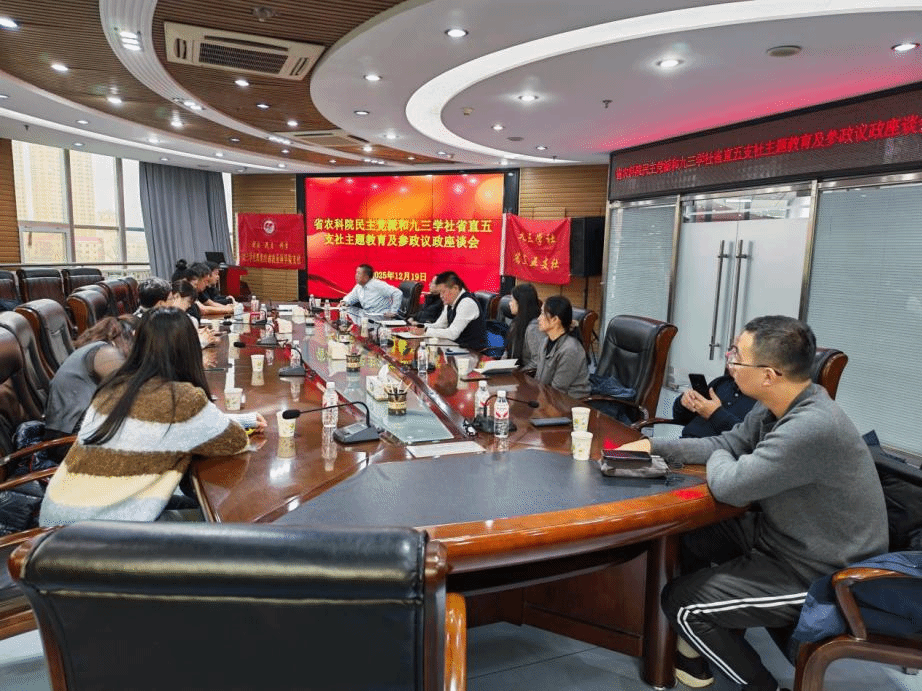 12月19日,九三学社黑龙江省农业科学院支社、民盟黑龙江省农业科学院委员会和九三学社省直五支社在黑龙江省农业科学院经济作物研究所会议室,联合开展参政议政主题教育活动。线下线上共计70余人参加会议。